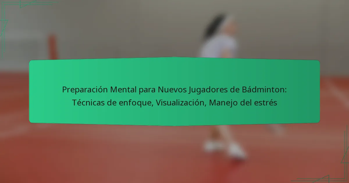 Los nuevos jugadores de bádminton pueden mejorar su rendimiento a través de diversas técnicas de enfoque que mejoran la concentración, manejan el estrés y aumentan la confianza. Estas técnicas incluyen prácticas de atención plena, ejercicios de respiración, establecimiento de metas de rendimiento, creación de una rutina previa al partido y uso de afirmaciones positivas.